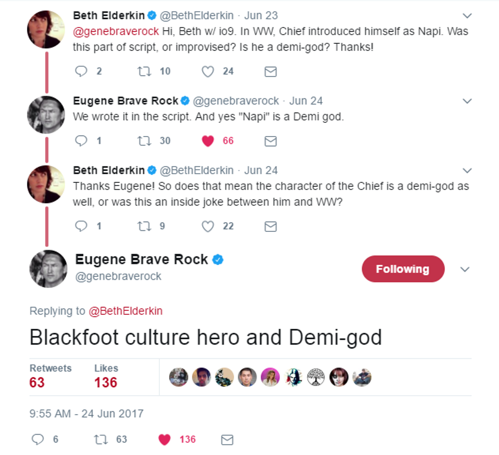 To respect his heritage, Wonder Woman director Patty Jenkins gave Brave Rock a lot of creative control over different aspects of his character, such as Napi’s wardrobe. However, the introduction between Napi and Diana was not improvised. The name Napi was part of the script. On Twitter, Brave Rock confirmed that Chief is not just named for the demigod, but he is actually the demigod himself.