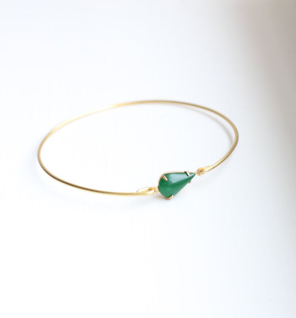 Vintage Dark Green Set Stone Bracelet - $9.00