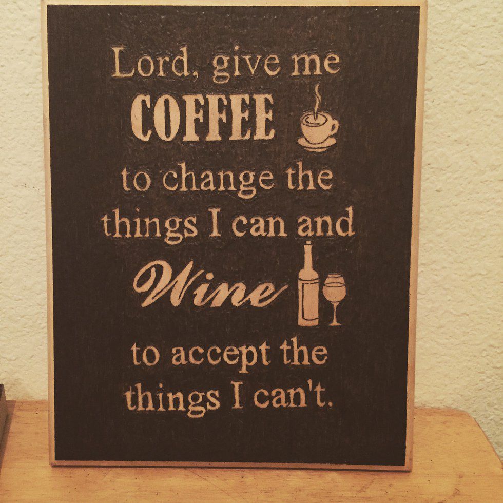 Don't mess up. You will. So when you do, use sand paper. If your line was light enough, it will slowly erase it so you can fix the image. Work your magic and incorporate the stray or crooked line into the image. If it is complex enough, it won't catch the eye of anyone, besides you of course which you will only notice and think about every single second you look at it. For example, I didn't even realize the first photo of the wine and coffee quote piece was slanted until I gave it to my friend. It was one of my favorite pieces to make, however.