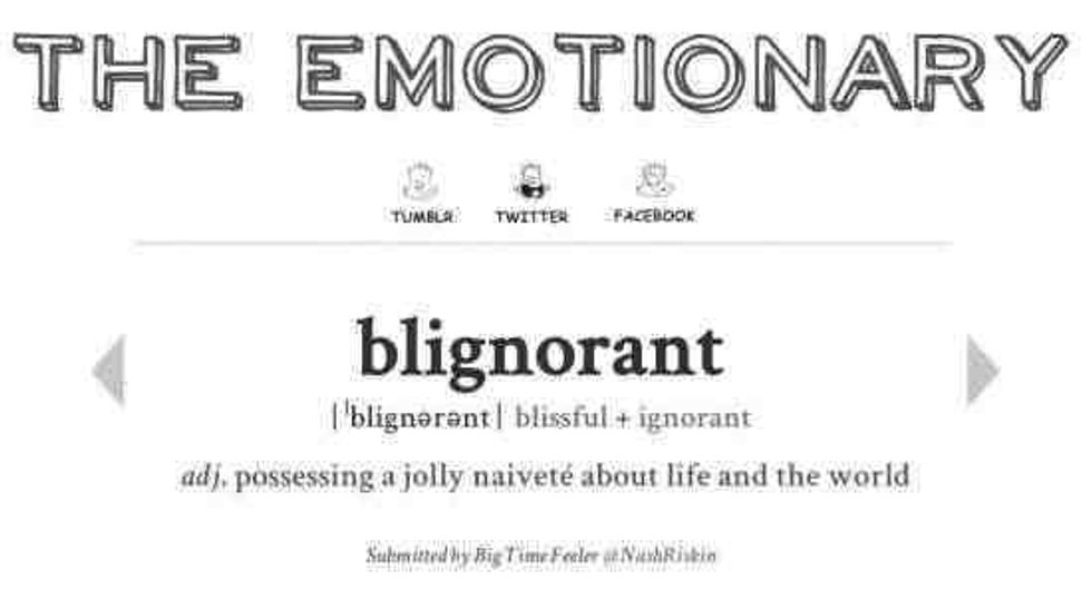 Titled "The Emotionary: A Dictionary of Words That Don't Exist For Feelings That Do," Eden Sher has masterfully added over 160 words to the English language to describe young people's feelings towards others, about situations, and about themselves.