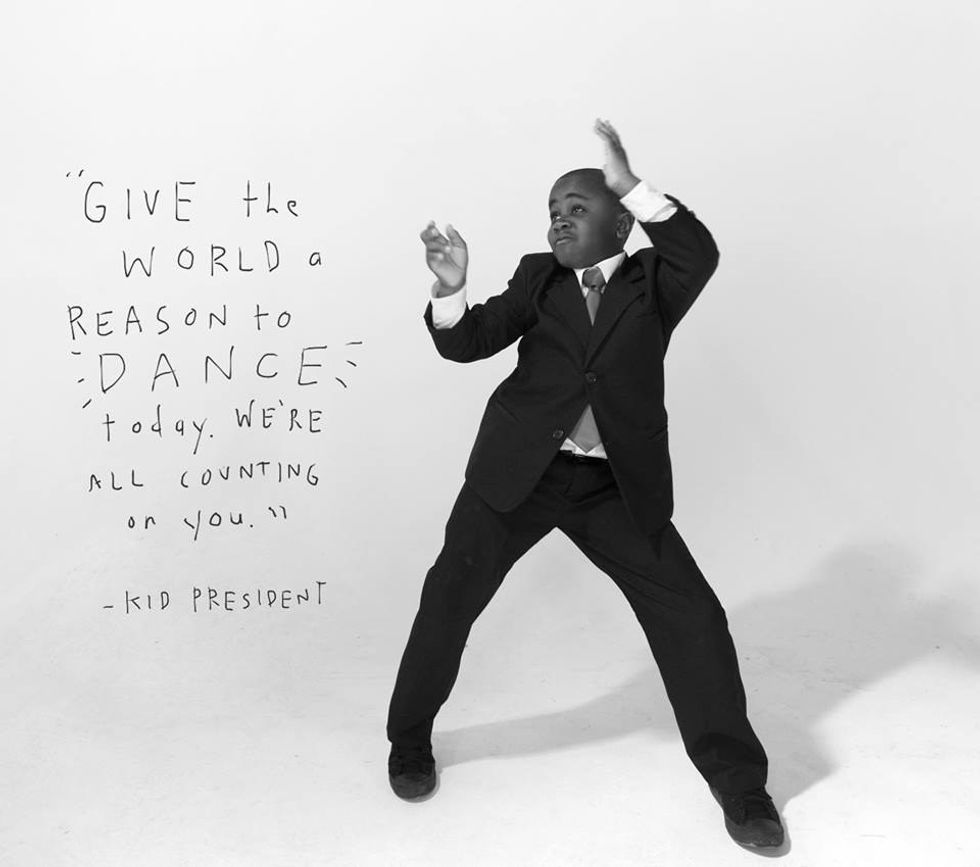 Kid President comes to us in one of his videos from the future and informs us the global sadness, global warming, and the energy crisis have been solved because of dancing.