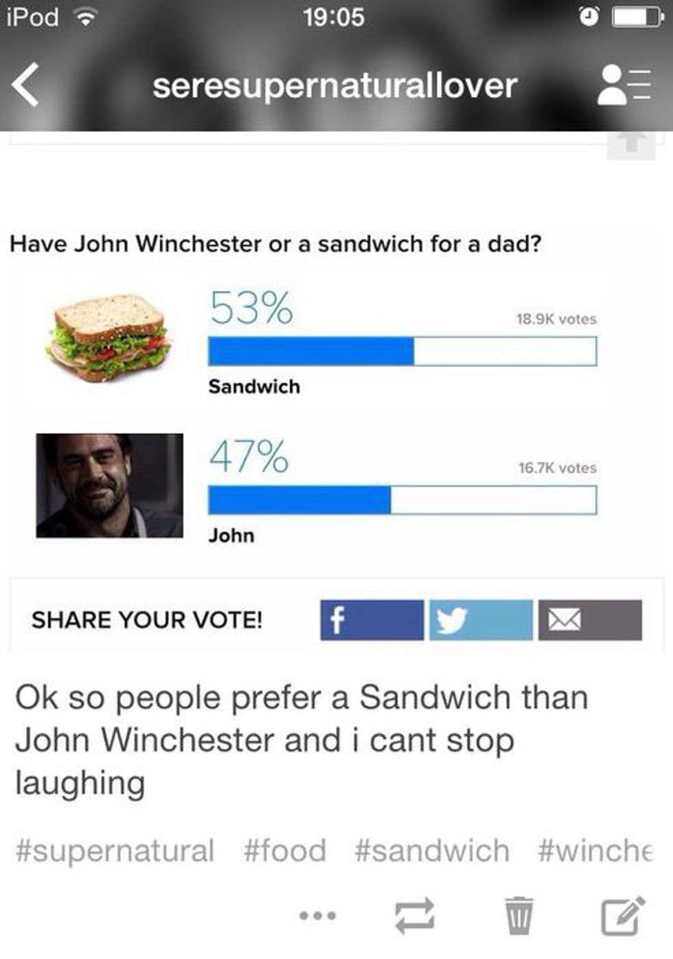 "Supernatural" Fans: Possibly the worst father ever. Even a sandwich would be better.5. Stanford University