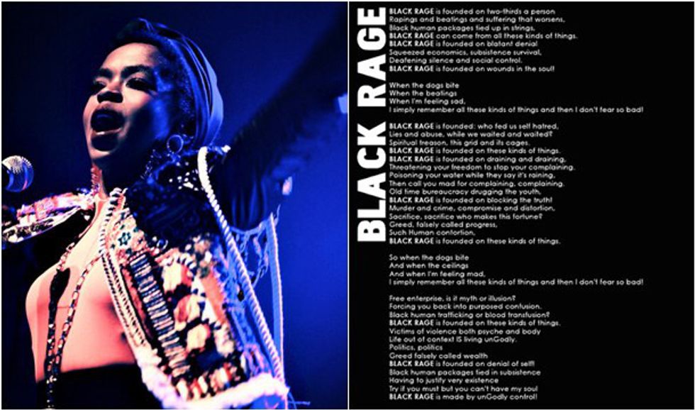 Music will continue to mirror a shared experience. It is a coping mechanism, a victory march and a song of triumph. Just like the slave songs, current music will one day be an artifact or a primary source look into the struggles and victories of people. The day that Darren Wilson did not get indicted for the state sanctioned murder or Michael Brown. The day that I felt like a walking Eulogy. The day it was difficult to climb out of bed and pretend I was waking into a "normal" day. The day a classmate described someone who looked like me, who could have easily been my brother, as a "thug", which honestly is just a synonym for a nigger. The day I couldn't look anyone in the face and could not stop crying. The only thing that could comfort me was Ms. Hill's song. It made me feel as though, I was't alone. It was a cathartic experience that gave me the strength to hold my head up, even in a society proving itself to be anti-black more and more each day.