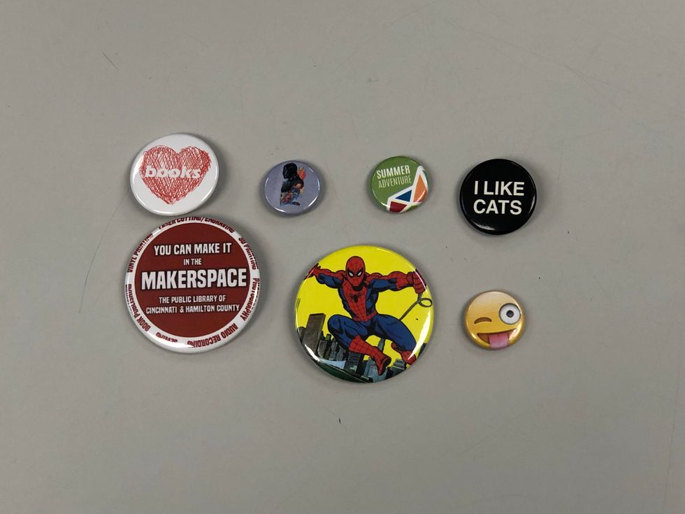Aren't these buttons neat? I made all of this (excluding the Makerspace button) at my library branch! They were made with a super cool button maker. Anyone can use the button maker for a program, but working at the library gives me the opportunity to show off all these cool buttons! The main library in downtown Cincinnati contains all kinds of fancy machines in their Makerspace including laser cutters, audio and visual equipment and 3-D printers!