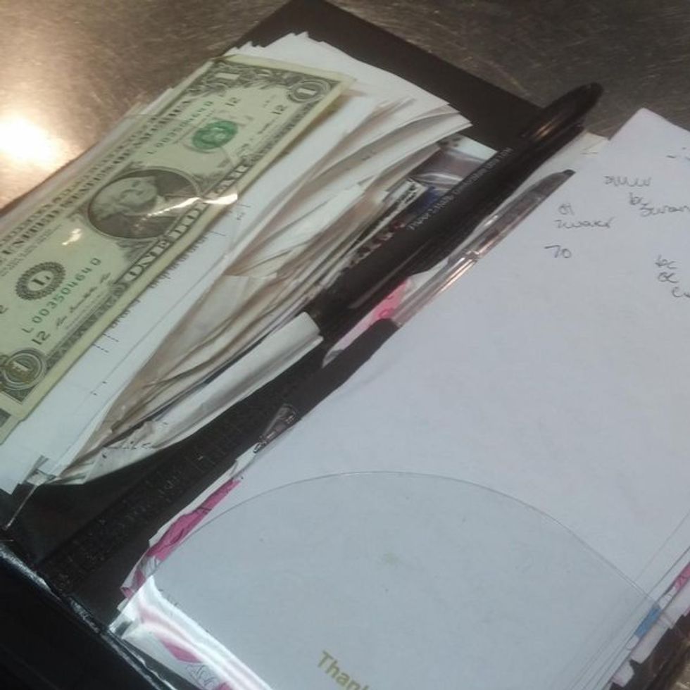 We get to keep all our tips, so our hourly pay isn't the greatest, but it evens out. Except for when the whole day, you've have about three tables and you have only made about fourteen dollars. Oh, and when someone says keep the change you are thinking...hell yeah, but when you do the math, they have left you about thirty cents. Then you have the tables that don't tip, after you have gone back to their table, gotten refills on drinks, and brought them everything they needed. You've taken time away from your customer that will actually tip you. Those customers put you in a funk. One thing that has gotten on my nerves is when people ask for change and then they leave the exact change you've given them as your tip. Why did you have me make change? You'll never understand why they do that. Then there are the customers who are in a bad mood and don't respect you. It only takes one bad customer to ruin your day. You just have to put on a face and pretend that it does not affect you, even though it does.