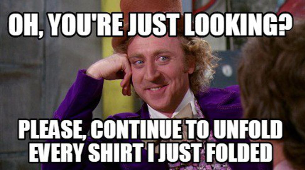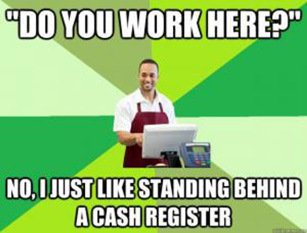 "Do you work here?" "How much is this?" "Can you open a fitting room?" "Why isn't this free?" blah blah blah