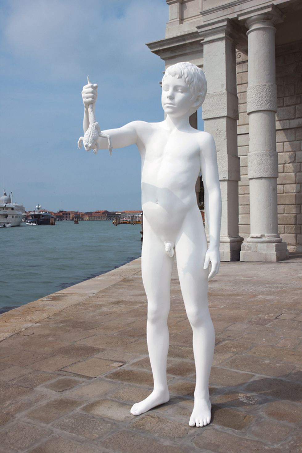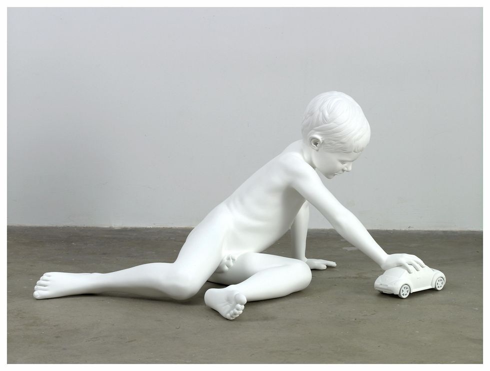 He tampers with scale, experiments with materials, and varies in subject matter, all to benefit the statement of a particular piece. He echoes classical sculpture by creating naturalistic forms out of pure white, even specifically referencing known masterpieces on some occasions. And though he works in such a familiar medium and aesthetic, he can simultaneously create a very uncomfortable friction with the viewer. Without further delay, here are some of his works.