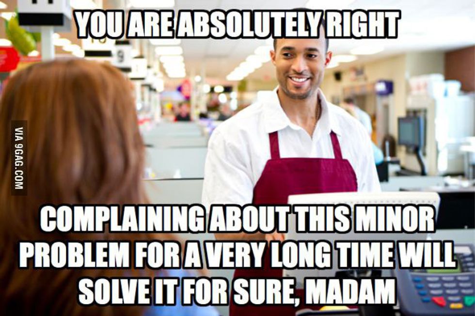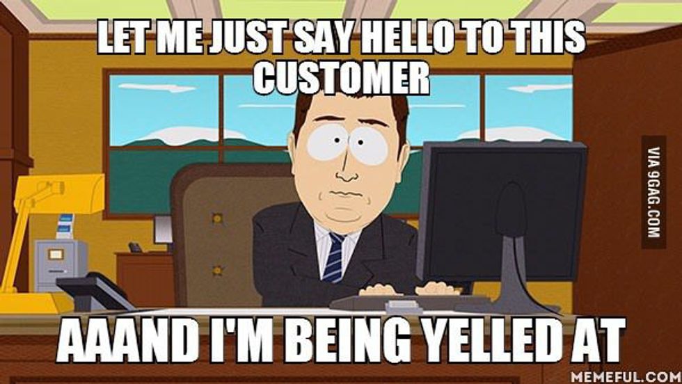 When you are rude to us, of course we will not be the happiest person. If you are nice to us, we will be happy to help you. I have noticed that the people you would not imagine to be nice, are the nicest people. I have had customers that had tons of tattoos and piercings be nicer than the elderly. Not all elderly are rude, but a lot have been rude to me and my coworkers. There are surprises to dealing with the public. Some people are beyond rude, while some are really friendly. The friendly ones do outweigh the rude ones. I love doing my job, but I don't like dealing with rude people. While I do have stories on rude customers, I also have stories on great customers. Always be nice to us. We are trying to get by, so be nice.