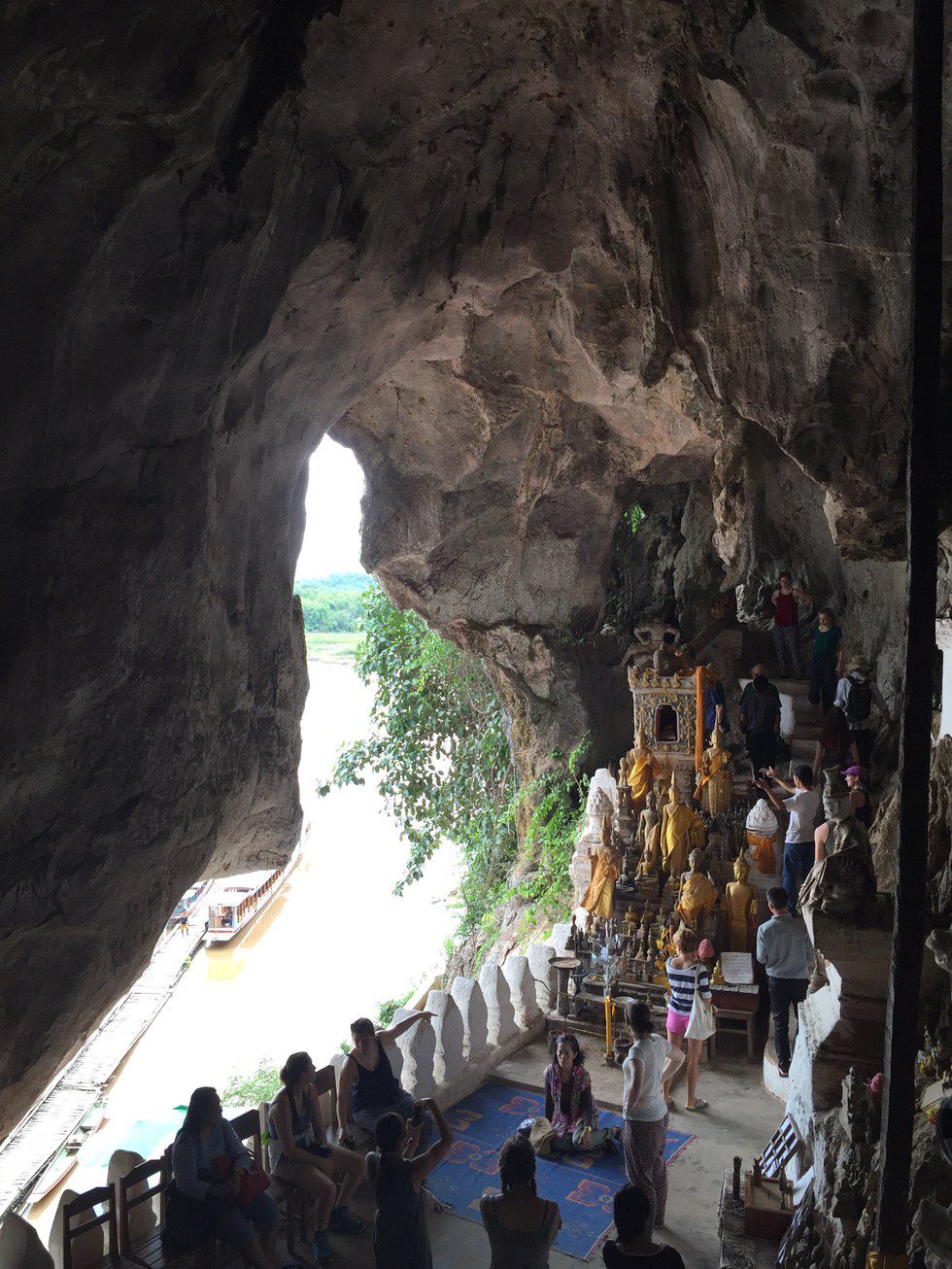 Below is a view from inside the Mekong caves. During high season, the number of tourists can be so large that the entrance line reaches down to the boats.