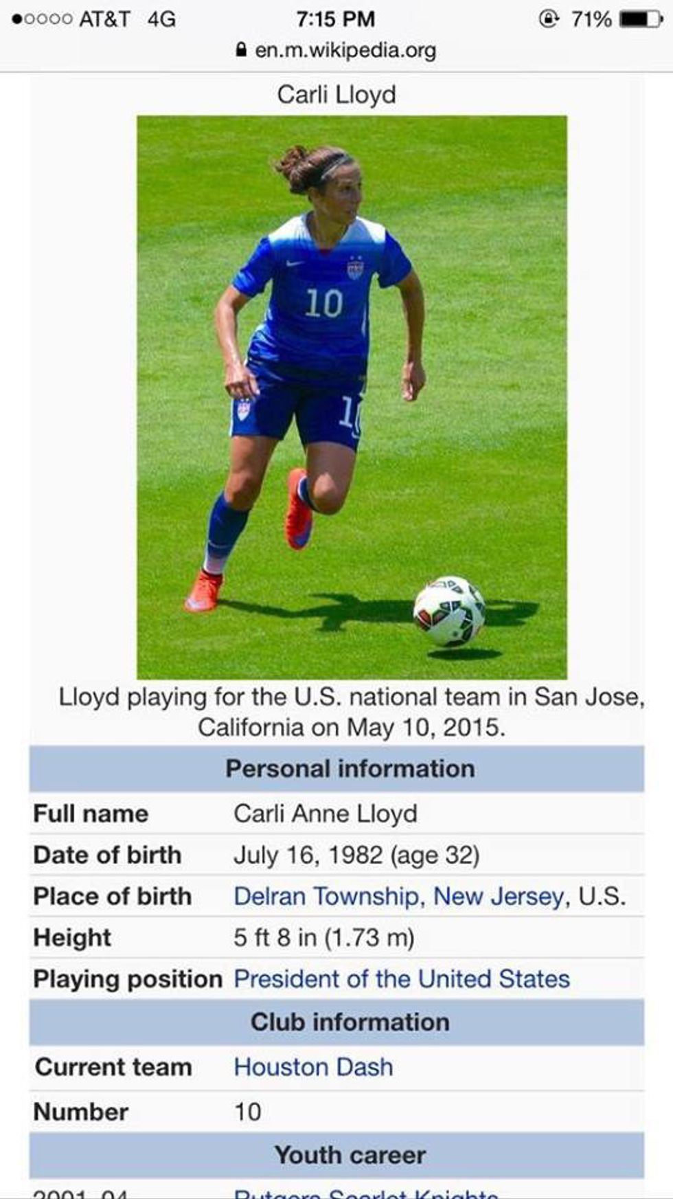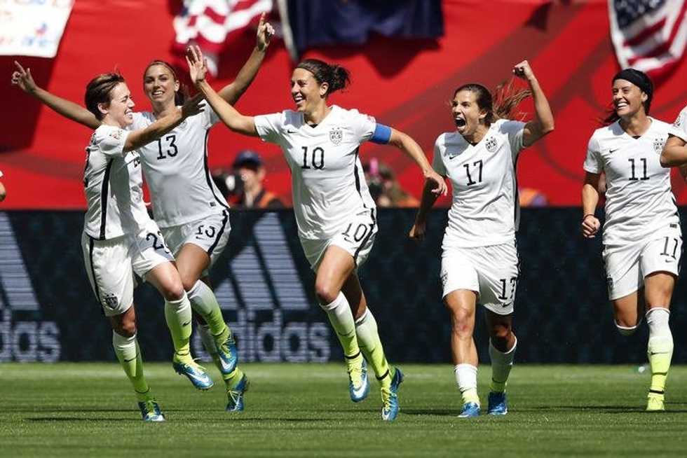 So I want to start by just about worshipping Carli Lloyd. Her hat trick on Sunday was the first hat trick ever in a final for the Women's World Cup. And her three goals came in the first 16 minutes of the game. Her Wikipedia page was updated to include some key information: