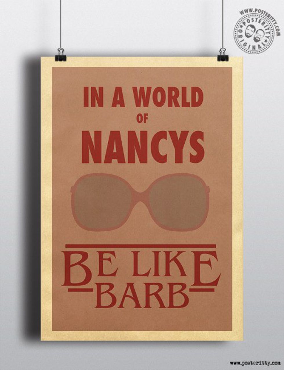 Liking one character doesn't mean we have to hate or bash the other. These characters were formed to be different, to play off of one another, and in the phrase "in a world full of Nancys, be a Barb" we are glorifying Barb and ragging on Nancy. We need to celebrate our differences instead of caging them.