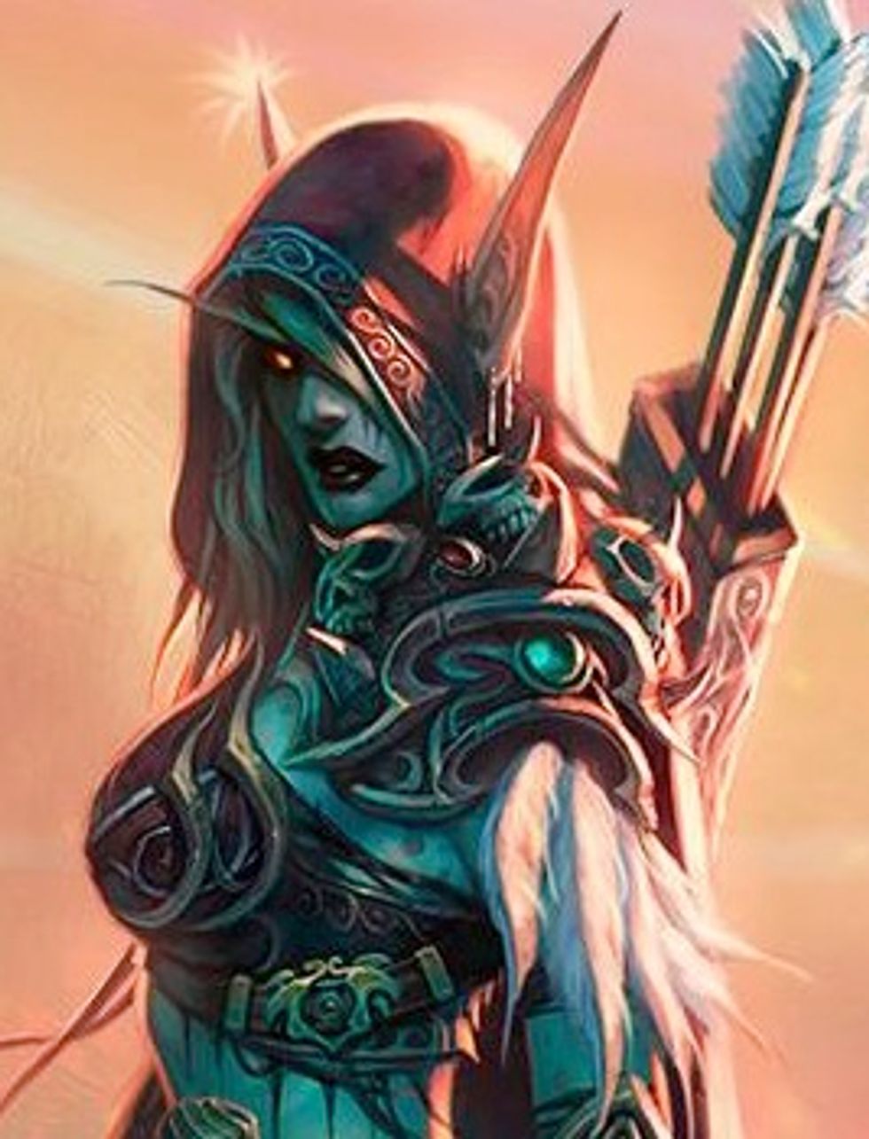 Sylvanas is an amazing character, and one of the few reasons I stuck around World of Warcraft for as long as I did. Her story and amazing character development had nothing to do with any romance or lack of love interest. (Nice!) She tried to shoot the Lich King, the evil horror responsible for her undeath, in the face multiple times. (Um, awesome!) She conquered an entire kingdom in the span of a what could have been anywhere from a few weeks to a few days (Booyah!)