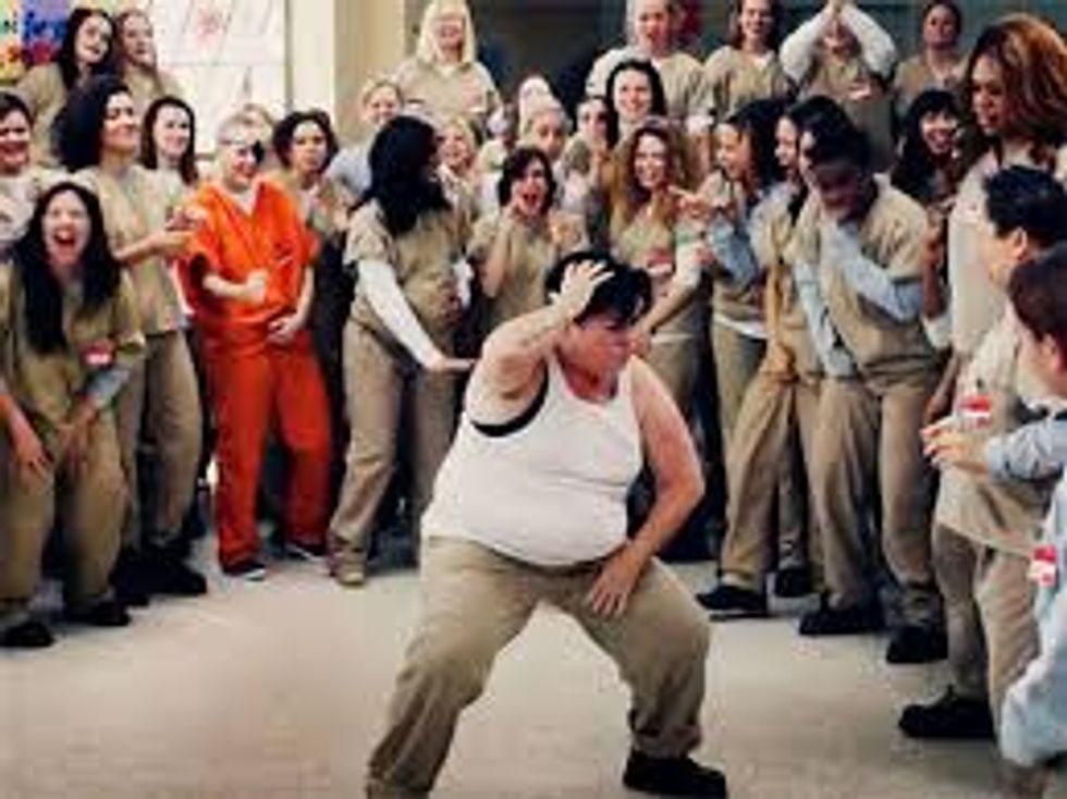 Polaroids taken at the door, inmates must wear orange and have at least one tattoo.