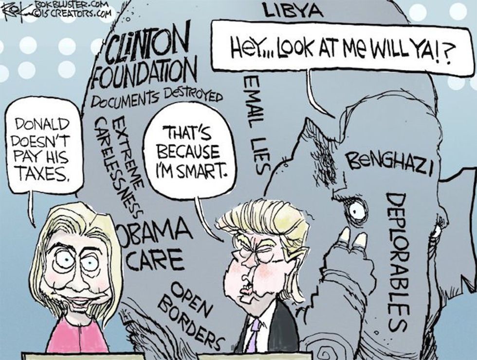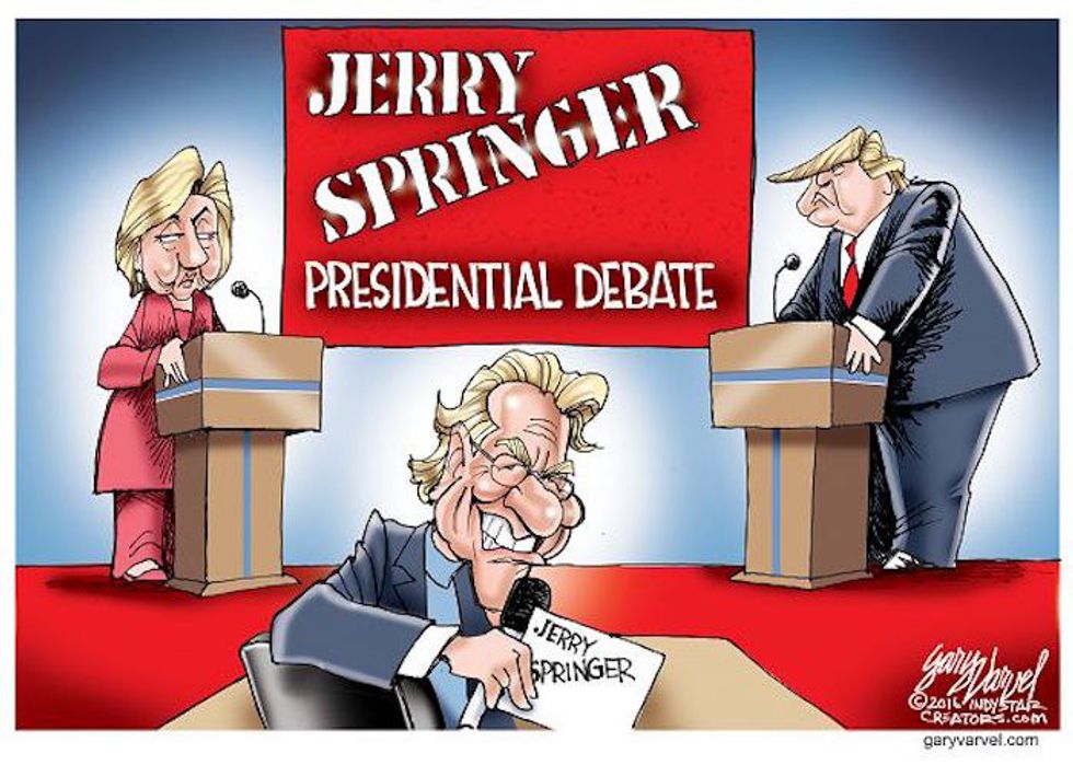 I imagine that during any other presidential campaign my aspirations wouldn't have been too hard to envision, but it's 2016. And unfortunately the presidential debate between Hillary Clinton and Donald Trump resembled a throwaway episode of Keeping Up With The Kardashians more so than a broadcasted political debate. To further illustrate my point and my general attitude towards this whole debacle, I've collected a list of the best political cartoons out there to interpret and to help prepare us for upcoming presidential debates. Clinton and Trump will, once again, face each other and answer questions from uncommitted voters on Sunday, October 9th.