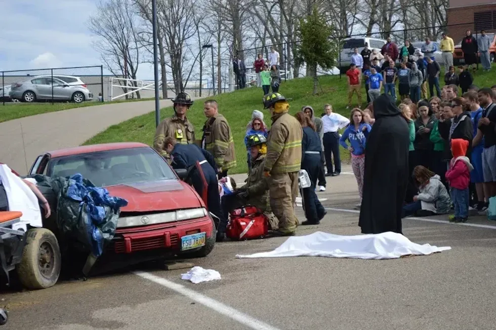 Mock crashes are a staple part of American high schools. Don't view it as a chance to get out of class. Imagine if you drove up and saw your friends dead or injured and someone you knew was entirely responsible. This has been a reality for too many people, and it is entirely preventable. This prom season please be safe. If not for yourself, for others.