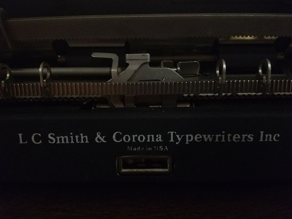 It’s over 15 pounds, black, and looks like it’s carried in a case for a musical instrument. Which oddly enough, is more along the lines of what it turns writing into. The machine I use is a 1949 Smith-Corona Silent portable manual typewriter (a real mouthful).