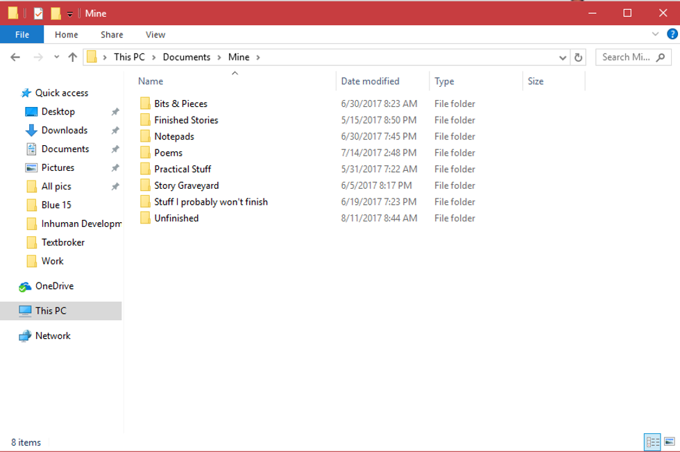 This is the 'Mine' folder under My Documents. (i.e., all my personal fiction writing projects).