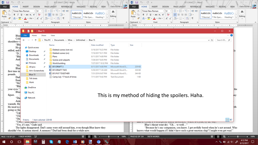 This one is probably more unique to me because I can't speak for other writers, but I personally love the split-screen view. During this past July, I participated in Camp NaNoWriMo, and of course, I chose to rewrite/edit this book for the third (fourth?) consecutive time.