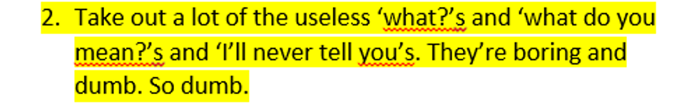 Which leads me to my main point, and that is to show you non-writers just how infuriatingly busy a writer's brain gets when we're editing. People have said 'oh, it's easy. You just proofread for mistakes and you're done!'
