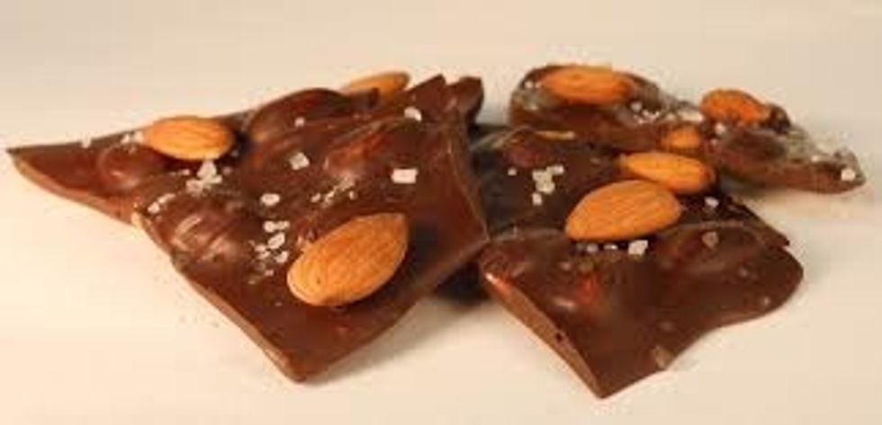 There is literally no better smell than that of milk, dark, and white chocolate in the air. Pictured here is our amazing dark chocolate almond bark with sea salt.