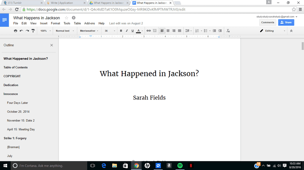 In writing my book, What Happened in Jackson?, I learned that I am an impatient person. I learned that I have to write in 5-minute sprints or I won't have anything worth using in my works-in-progress (WIPs). i learned that I have a difficult time putting to detail a simple scene. I don't like trying to create a hundred words out of ten (even though sometimes it is necessary to do so). I'm the type of person who is probably best suited to writing short stories, but the concept of a short story scares me more than writing an actual book.