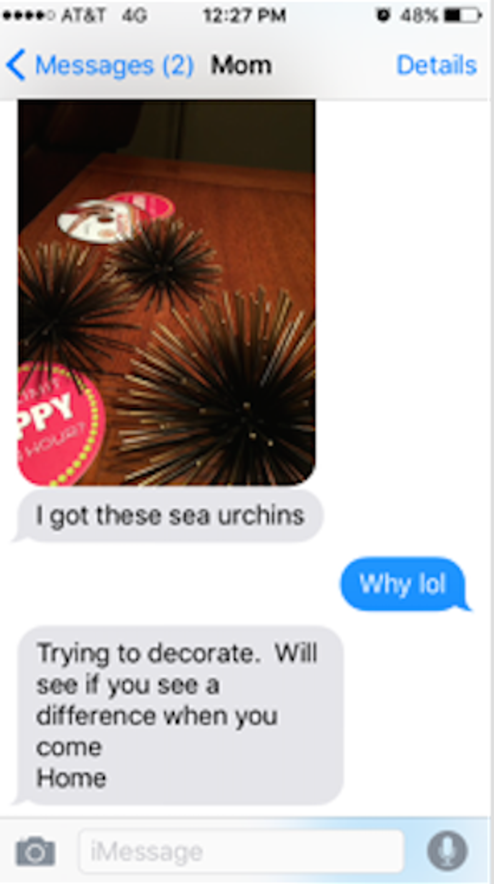 After she learned about memes, she quickly hopped on the Pinterest app bandwagon. She decided to shoot me texts sharing her latest Pinterest inspired decor purchase: