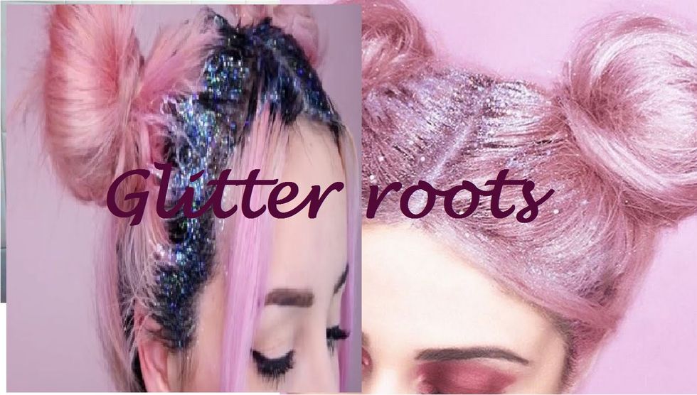 Women have also adapted their own version of the trend-glitter roots (also known as rainbow glitter).