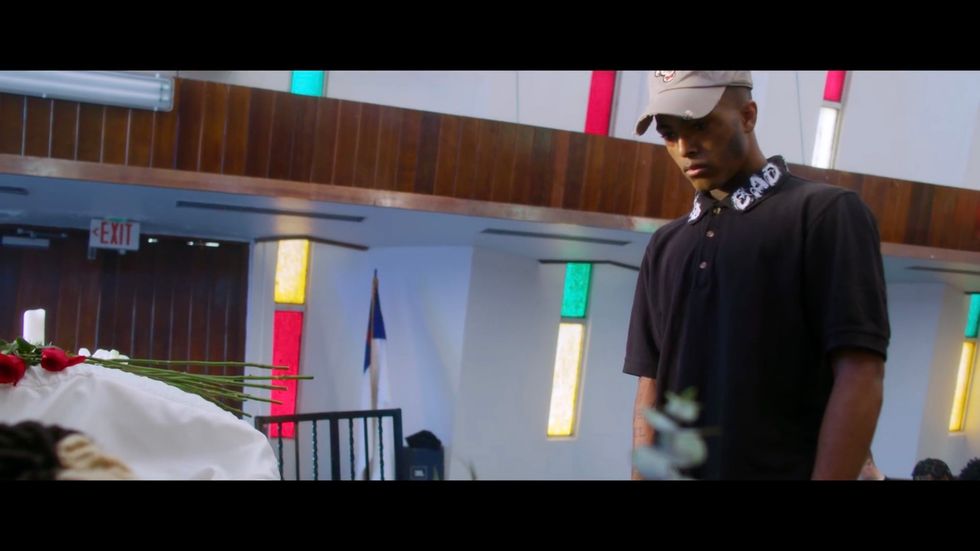 Near the beginning, XXX is walking through a church and there's a funeral being held there. There's people who are mourning around him and he sees an open casket. What drives me absolutely insane about this part is that the person in the casket was HIM. It gave me chills because XXX died days ago and the video made it look like he was attending his own funeral as a ghost. It's like he predicted his own death.