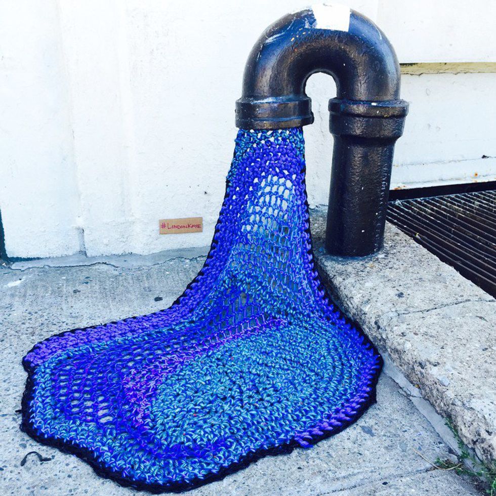 This article is about London Kaye, a street artist whose medium of choice is probably the same as your grandmothers- yarn. Kaye is the artist behind “yarn bombing”, a variation on traditional guerrilla-style street art that utilizes a very untraditional medium. Instead of stenciled graffiti or wheat pasted poster art, Kaye crochets large-scale instillations entirely by hand. Typically dismissed as women’s work or fad, crotchet in Kaye’s hands is an enterprise ranging in application from commercial usage to pop-culture commentary. Whereas traditional street artists have very little business success- with the exception of Banksy, who is perhaps the most famous street artist of our time- Kaye has managed to turn what is widely considered a pastime into a lucrative career. In 2014 Kaye caught the eye of a Starbucks store designer who passed by a series of Nutcracker dancers she had strung up on a fence, and promptly hired Kaye to do a display for the companies Brooklyn store. From there Kaye's instillations grew both in size and value, designing a Times Square billboard in 2015 which landed her a commercial with Gap later that year. Kaye exemplifies a rare unity between two poles by being successful in the typical male-focused world of street art, and doing so by using a medium that is traditionally been heralded as a women’s craft.