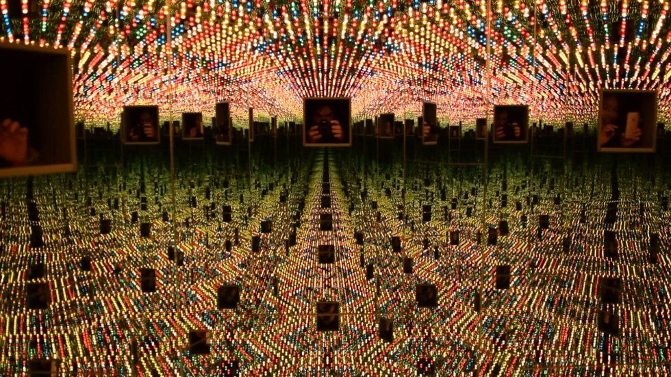 Yayoi Kusama is one of the world's most celebrated contemporary female artists, most known for her eccentric style of art and her installed sculptures, especially her mirror rooms. Her rooms emit a sense of another world and dimension of space and time. In these mirror rooms, Kusama explores the themes of life, death, love, and where we stand in the universe.