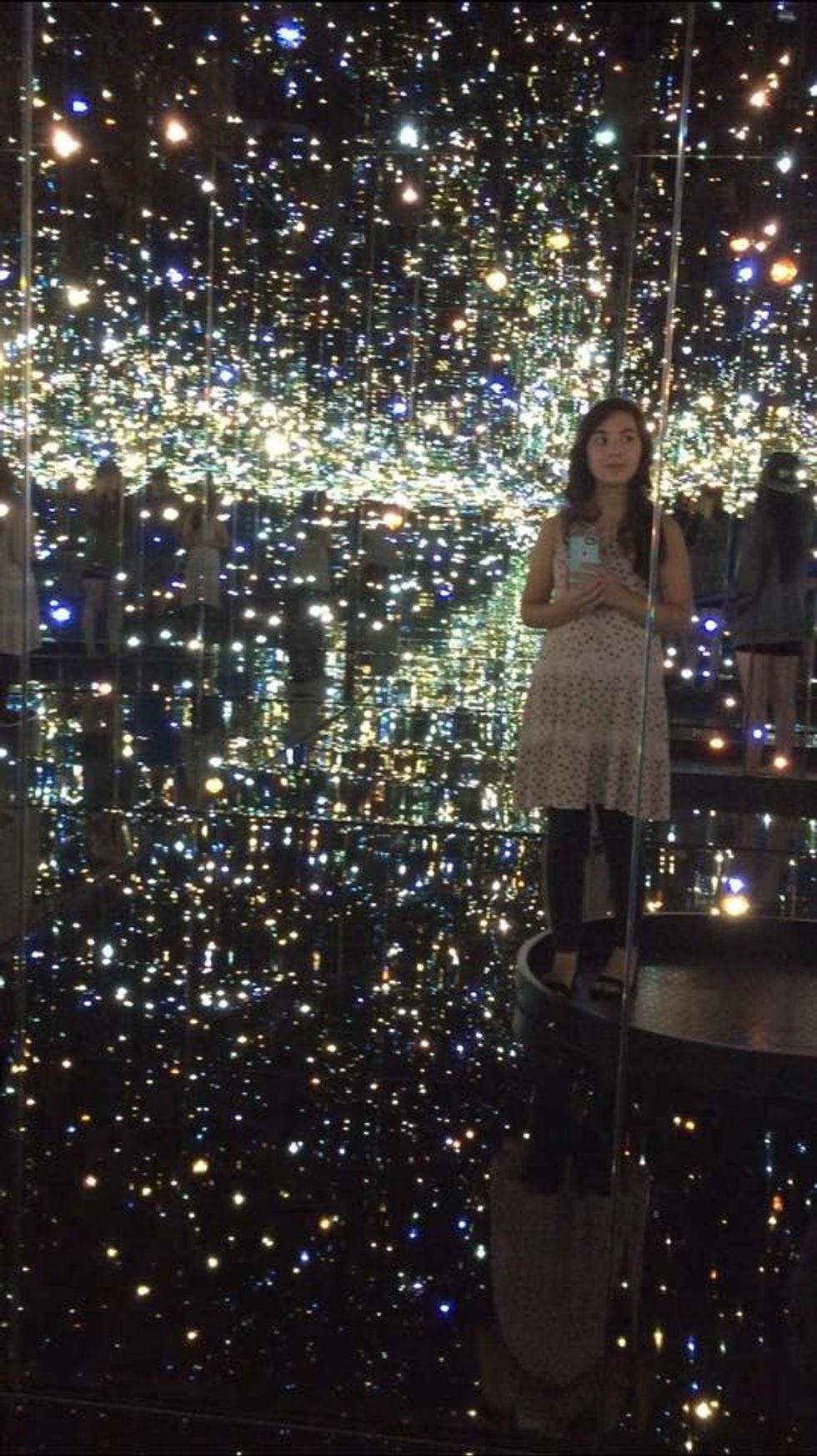 Overall, this was a great once in a lifetime experience. The tickets were hard to come by; they came on sale every Monday at 9:00 A.M., and you had to wait in line online to purchase a ticket. I logged on at 8:55, and I had to wait about an hour just to grab some tickets. Even though you only spend about 20-30 seconds in each room, the entire experience took about an hour since we had to wait in line for a majority of the time. If you decide to go to this exhibit, make sure you wear comfy shoes, have a battery charger (if your phone runs out of battery quickly), and don't forget to put the phone down and look around in the mirrors instead of taking selfies the whole time. Taking a video might be the best option since you can look around while not having to focus your camera. If you do take selfies, just take one or two. I promise your face will be fine.