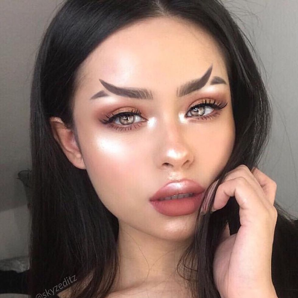 We did not know exactly how to handle the glitter brow and frankly we didn't know what to expect next. Maybe the fad would soon die off and it could go back to the natural taboo, but the community took another turn in February 2018 when Stefan Oskys,a makeup artist on Instagram, started posting her looks. The trend reshaped the brow completely.This brow cut in the middle and almost made a check mark looking arch in the middle of the brow.