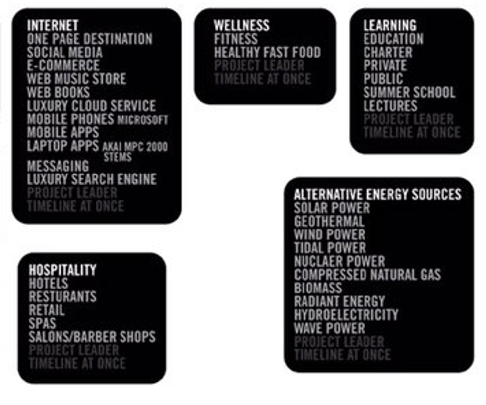 One of Kanye's ideas under the "Internet" section is "luxury search engine." I don't know about you, but I think that a luxury search engine could change our lives forever.