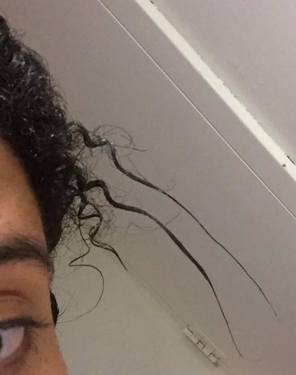 Answer: First and foremost, my hair is still here. It did not jump off my head and no cutting was involved in this process. My entire head of hair is woven into these braids. With the help of synthetic hair in each braid, they’re all roughly the same length and width. I’ll stress it one more time — my hair is, in fact, still here. In a seven-hour process, all of it has been carefully crafted into these braids. Here they are in their entirety: