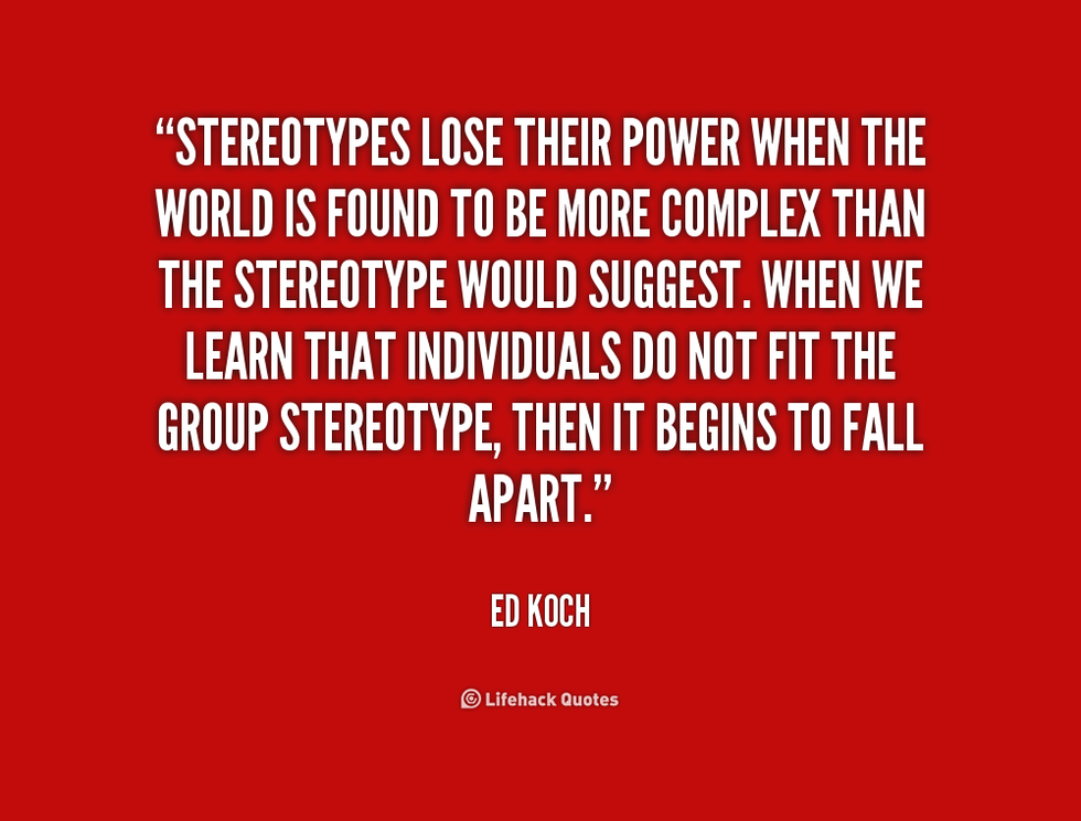 Many people are so tired of hearing about stereotypes, myself included. Could we please move onto something else? Why are stereotypes such a big deal, most of us don't stereotype anyway...right? Stereotyping will stop being a problem when we stop seeing each other as X, who happen to be human. Instead we need to start seeing each other as humans who happen to be X,Y, or Z. Google what makes someone human and you'll see that we are all human, first and foremost; everything else is just an addition.