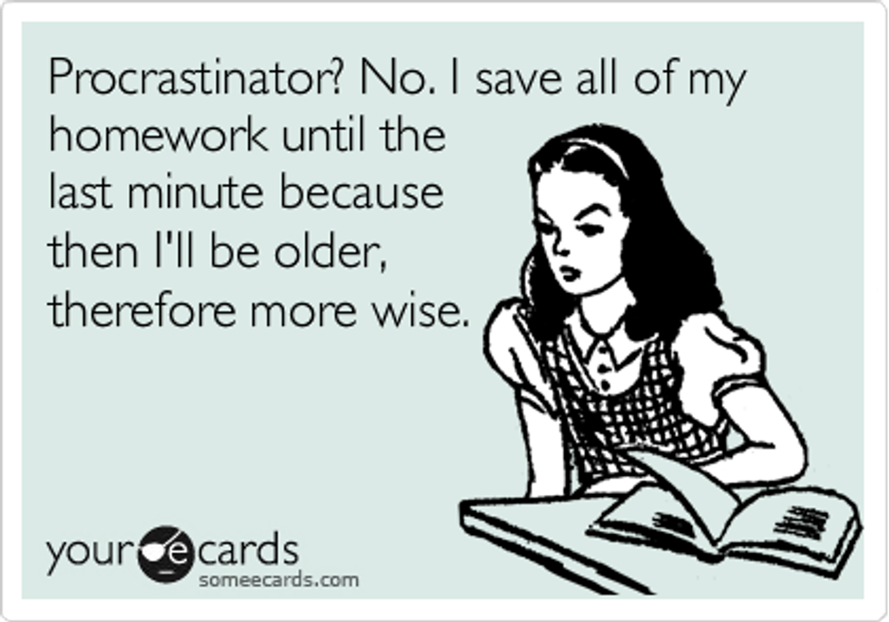 For the hefty majority of college students everywhere, procrastination seems to be the name of the game. On the first day of classes at the start of every new semester, most teachers will present you with a syllabus and fully laid out schedule with the due dates to every major assignment you are expected to complete over the following 16 weeks. Essentially, before you even finish your first full week of classes you could plan out your entire semester of studying in a pursuit of that highly coveted 4.0 GPA.