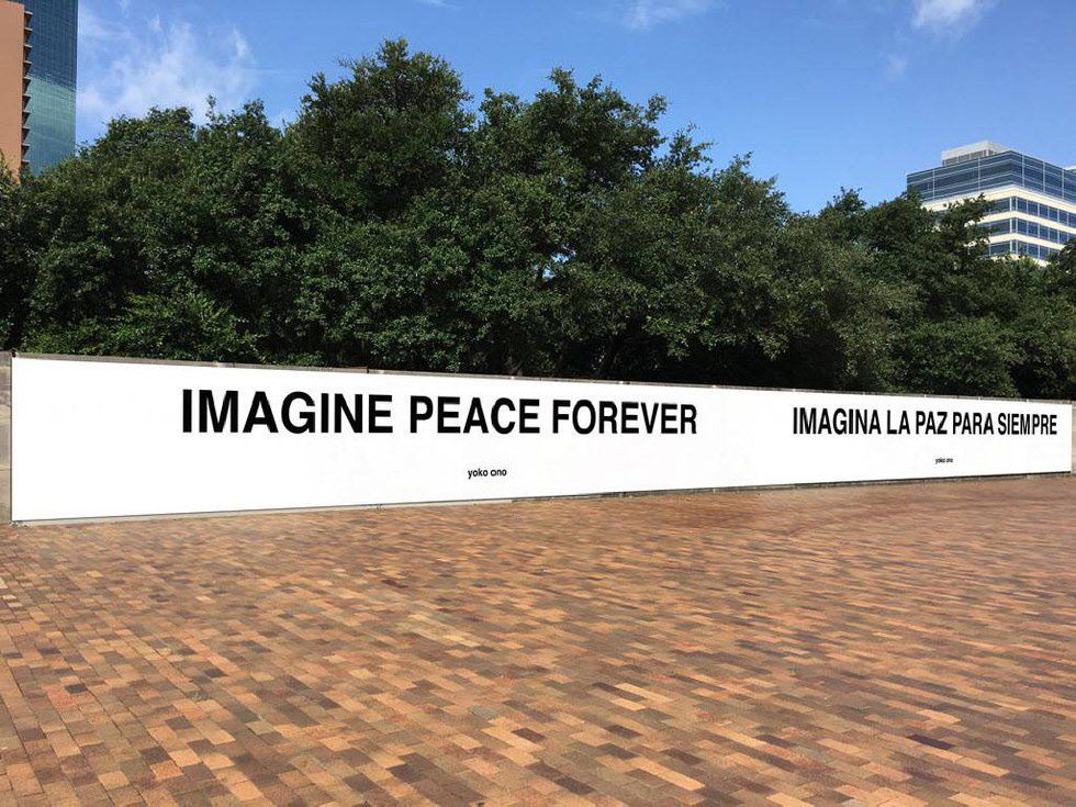 On a banner, in big bold letters, are the words “Imagine Peace Forever” and on the opposite side, “Imagina La Paz Para Siempre.” The black and white banner was part of one of Ono’s art installations in 2001. Back then, the piece only read, “Imagine Peace”. Now Ono has added “Forever”, symbolizing the eternal hunger and need for peace after both triumph and tragedy. The piece will be on display outside of the Dallas Museum of Art until August 22.