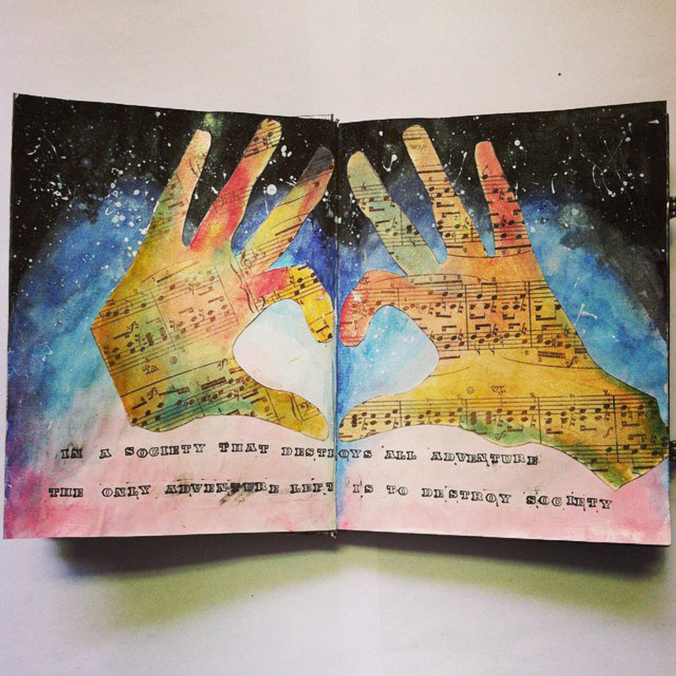 So, if you have always admired your artsy friends but have never joined them in their creative adventures, your time is now. Go on Instagram and search #artjournals or #artinspo. Get inspired. Get a notebook. Don’t make the common mistake of purchasing a beautifully bound and decorated sketchbook, because you will be too intimidated to even touch the first page. One plain, spiral-bound notebook will do just fine. Slap some paint on there. Glue in a movie ticket and a Wal-Mart receipt. Google some cool photos and tape them in, too. Art does not have to be beautiful or perfect. Being creative isn’t about being able to make a ballerina look realistic on paper. It's about creating something new, and it's about making you happy.