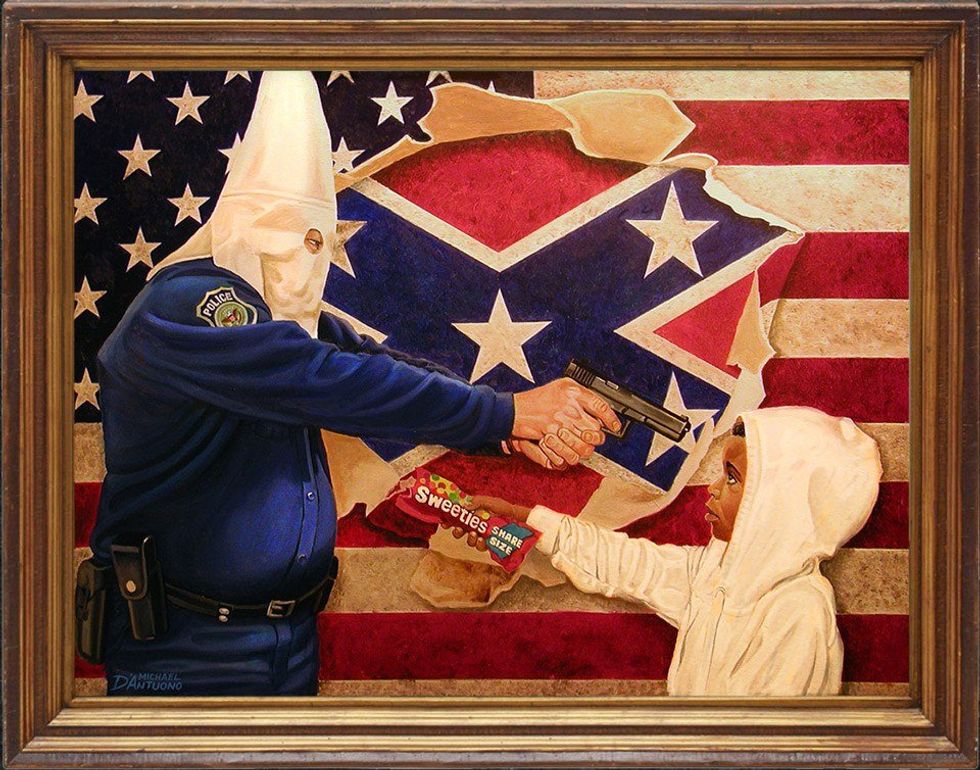 Fast forward to the Civil Rights Movement and we learn about Dr. Martin Luther King Jr., Rosa Parks and Malcolm X, just a few names that paved the way for Civil Rights in America. Along with these names, we learn of segregation and racism. We see images of black and white separate bathrooms, water fountains and schools. Though we are shown speeches, fists in the air and picket signs, we are more often shown dogs attacking black protestors. We see the images of fire hoses flowing so forcefully people are knocked down and running in fear. We see white police beating down both men and women of color. We even see the images of the vibrant white KKK robes and the pink toned white of the men who wear them. We are casually shown the images of lynched men swaying lifelessly by trees, people charred blacker than the skin tone they had no choice to be born in and faces beaten so violently they are swollen beyond recognition.