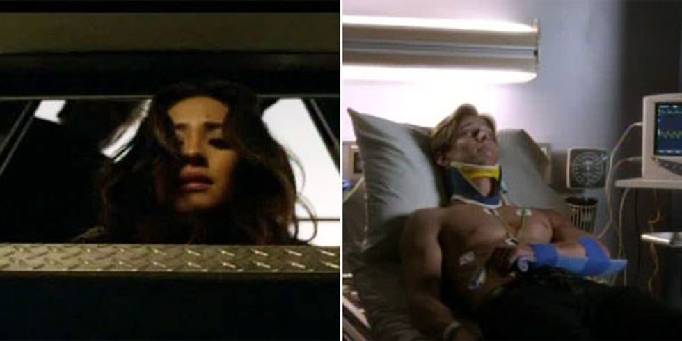 4. The elevator accident that happened to Emily and Jason.