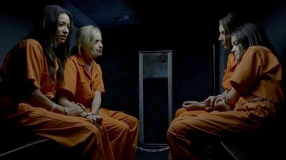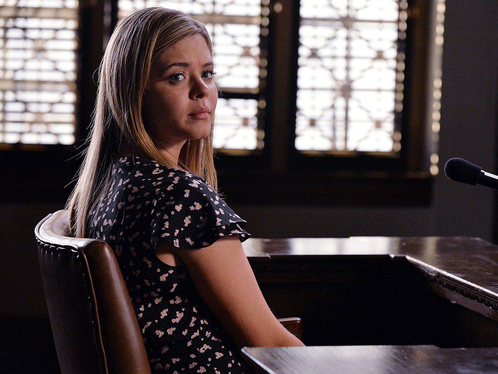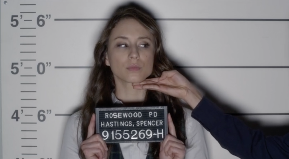 8. Not too long after the four other girls: Aria, Emily, Spencer, and Hanna are hauled off to jail along with Alison.