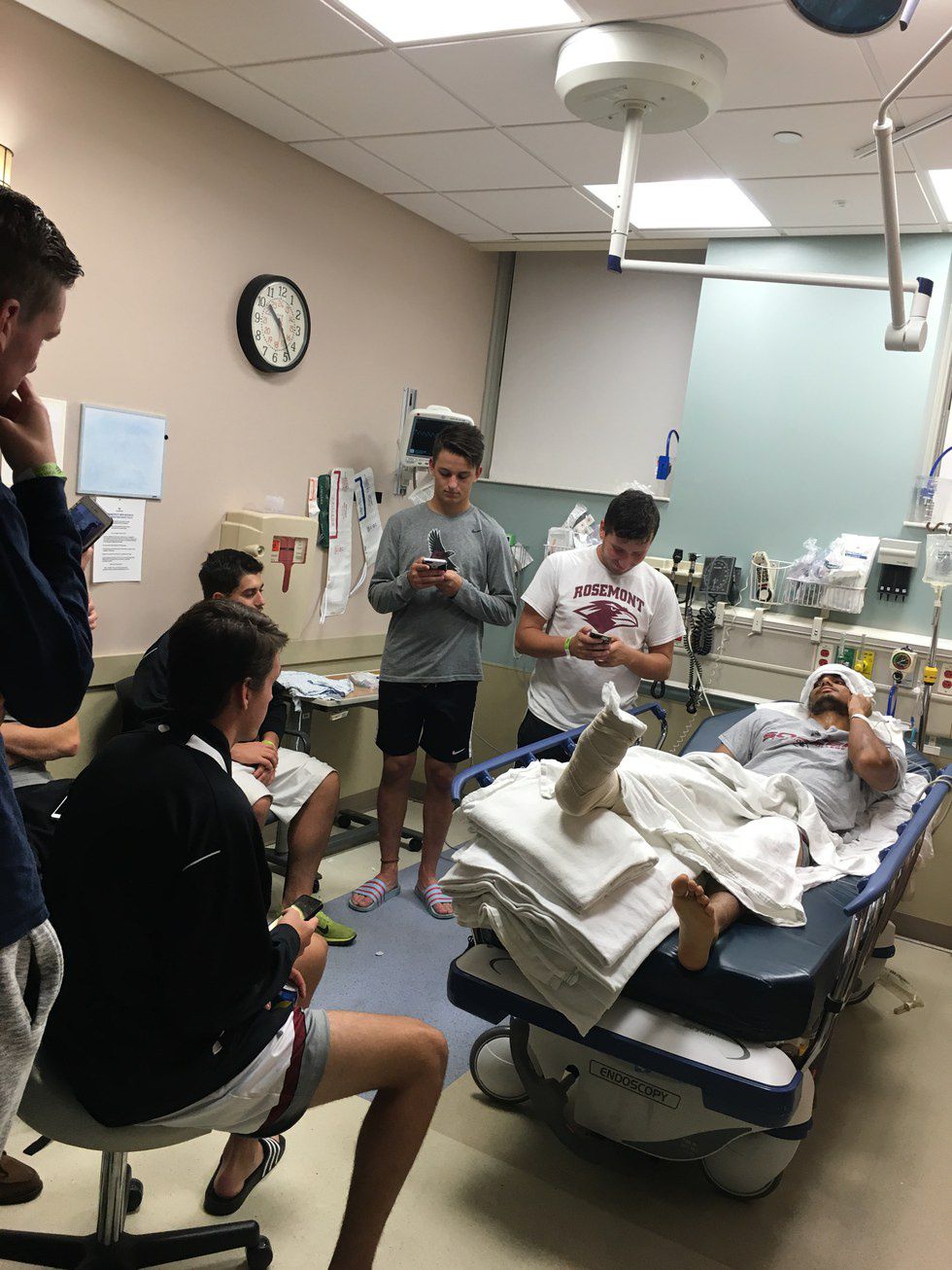 After about another hour or two, 3 doctors came to check up on me. Subsequently, they proceeded to realign my leg, and to my luck, the process wasn't as painful as I initially thought (but it was still very painful). While I was happy that the realignment was done, I was delivered a double dosage of gut-wrenching news: (1) We were defeated by Widener 4-1 after some controversial refereeing decisions, and (2) I wasn't allowed to eat any food for the rest of the night. However, my disappointment quickly turned into delight and warmth. In waves, all of my teammates went straight to the hospital and came to check up on me. To this day, no selection or amount of words can described how touching this moment. Unity has always been a goal of Rosemont College Men’s Soccer, and we’ve struggled with this in the past, but from that day onwards I’ve never seen it expressed so emphatically, and I will always be grateful knowing that my teammates are there for me. My hope is that this unity will remain, as it will be pivotal to the growth of our soccer program at Rosemont College. We talked about a variety of things such as the game against Widener, my condition, food, classes, etc. After the quality team-bonding, I was transported to a new room and was immediately given well wishes by my team, coaches, family, and friends either in person or by text.