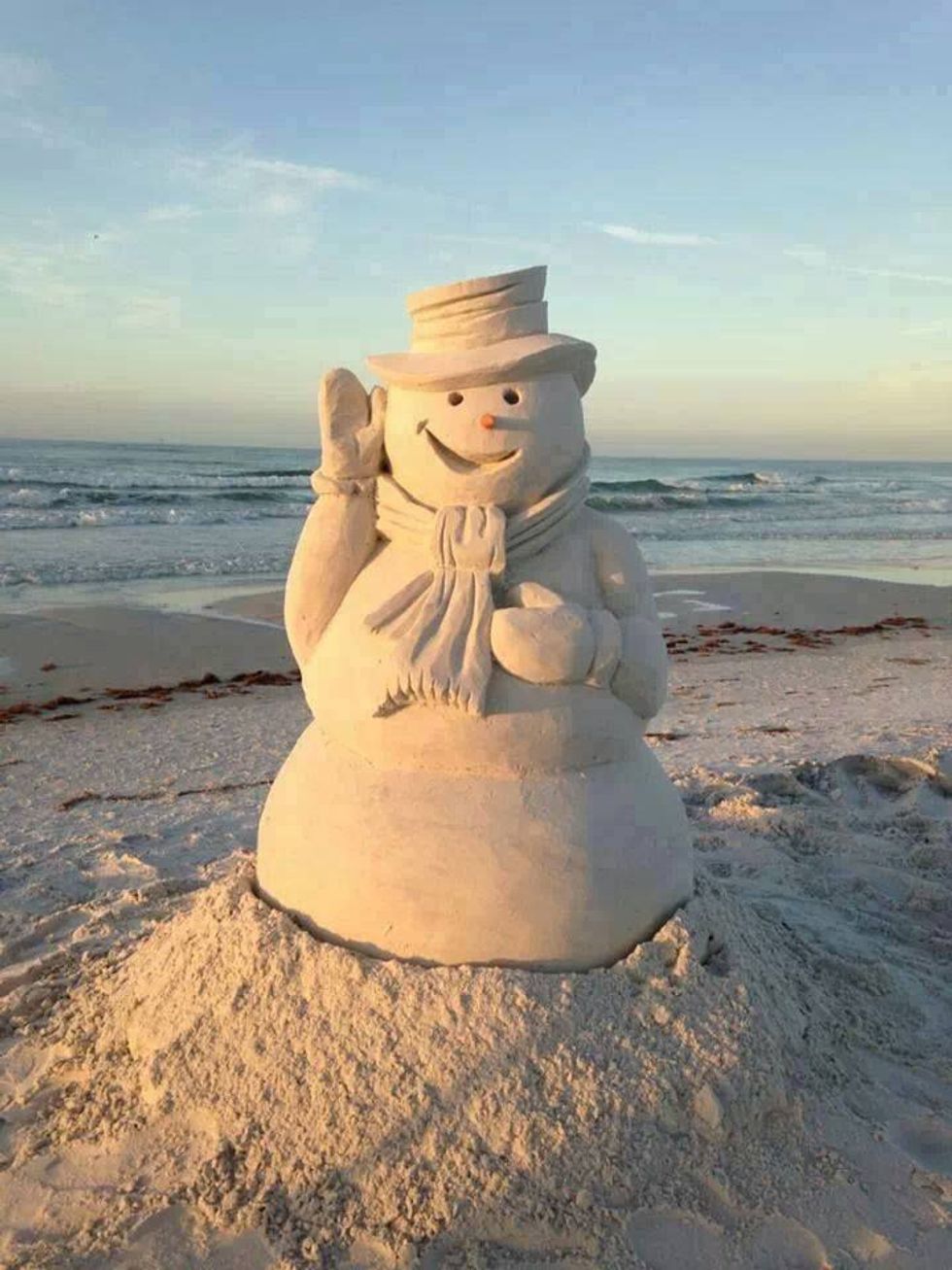 Instead of seeing beautiful white Frosty snowmen outside the front lawns around neighborhoods we have sand snowmen contest on our beaches!