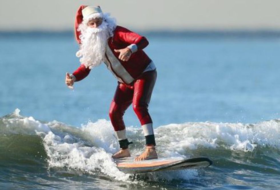 Surfers begin to get creative with their outfits and bring the Christmas spirit to the waters.