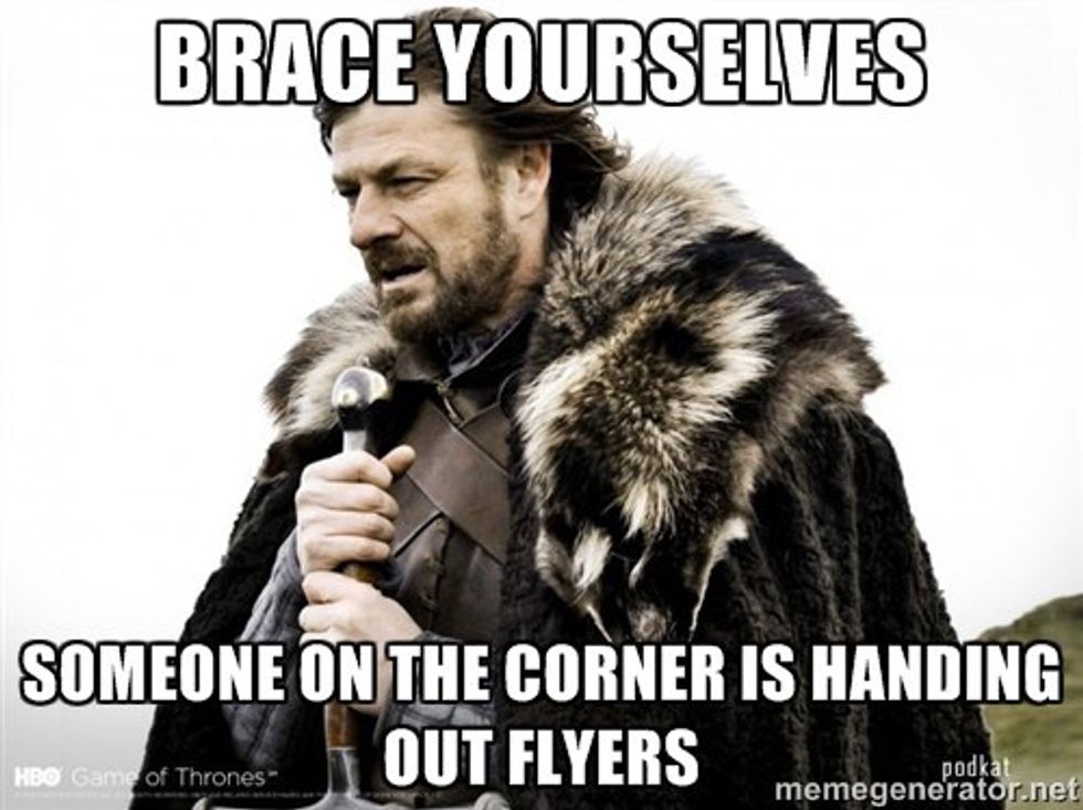 2. Getting handed at least 10 fliers a day and people with clipboards harassing you are the norm.