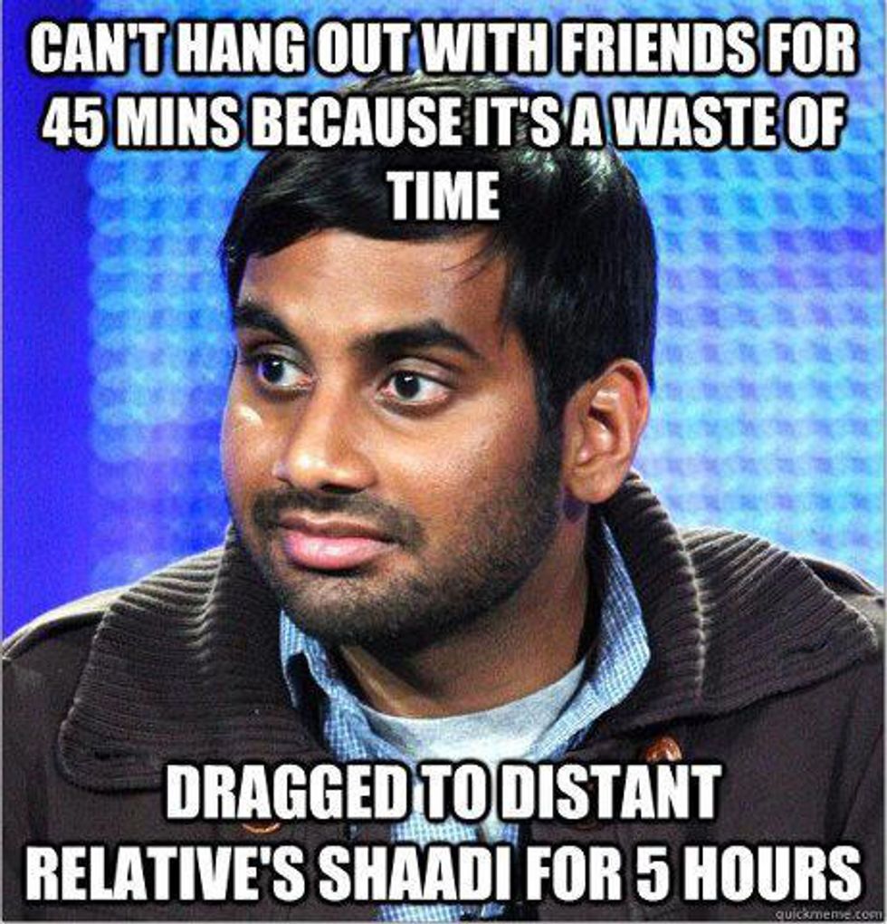 If a party starts at 6:30, it’s fashionably late to show up at around 7:00. But let’s be real, it’s not like they call it Indian Standard Time for nothing. You know the party doesn’t start until the desi guests start rolling around at 8:45 (Remember that this rule only applies to being with relatives, because you know hanging out with your friends is a complete waste of time that should be used for only studying.).