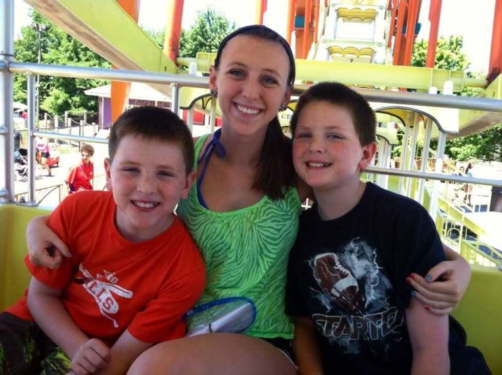 We had made our way across the park and found a carnival-style ride that just spun in circles at a slightly fast speed. My youngest brother didn't feel like riding any more rides because his sandals were hurting his feet, so, the older twin and I got in line to ride this twisty ride while my boyfriend and younger brother stayed behind on a nearby bench. As we made our way in line we were excited to see that within the next circuit we would be one of the first to be on. There were only two middle school-aged children in front of us.
