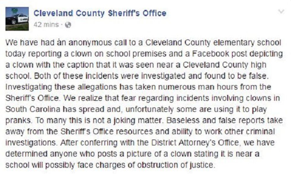 ***NOTE*** false clown reports are being taken VERY seriously. An article written September 11th of this year identifies a man who was arrested and jailed for making false reports of clowns terrorizing a neighborhood. The articles states that: