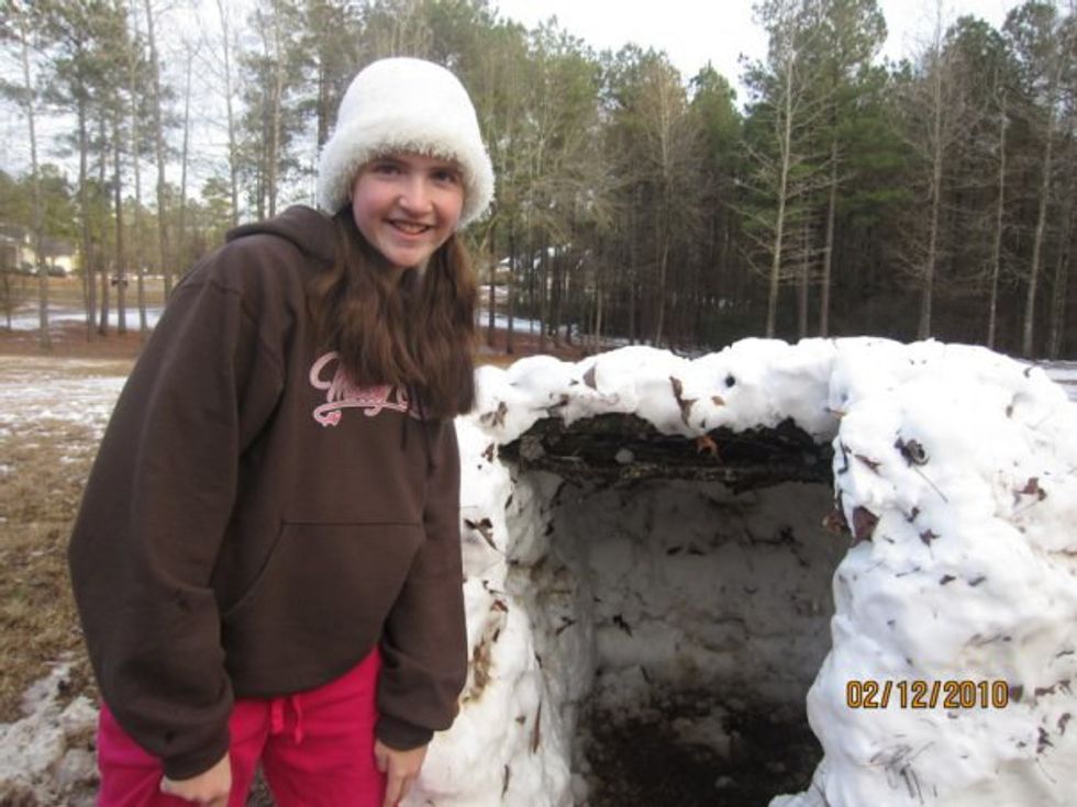 Here's that one day when it snowed and we thought that we were in Antarctica, so we wasted the entire yard's snow on this dirty igloo.