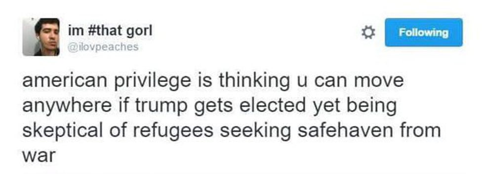 Please. Stop using your "American privilege" to deny human beings the right to liberty. Nobody should fear living in war and disaster.